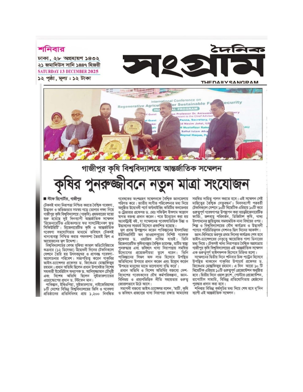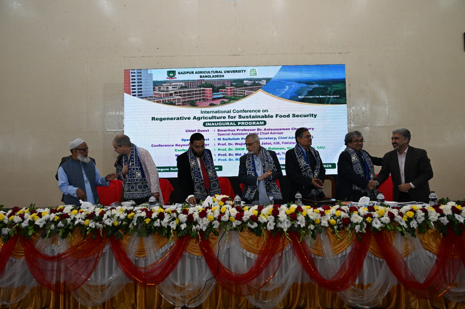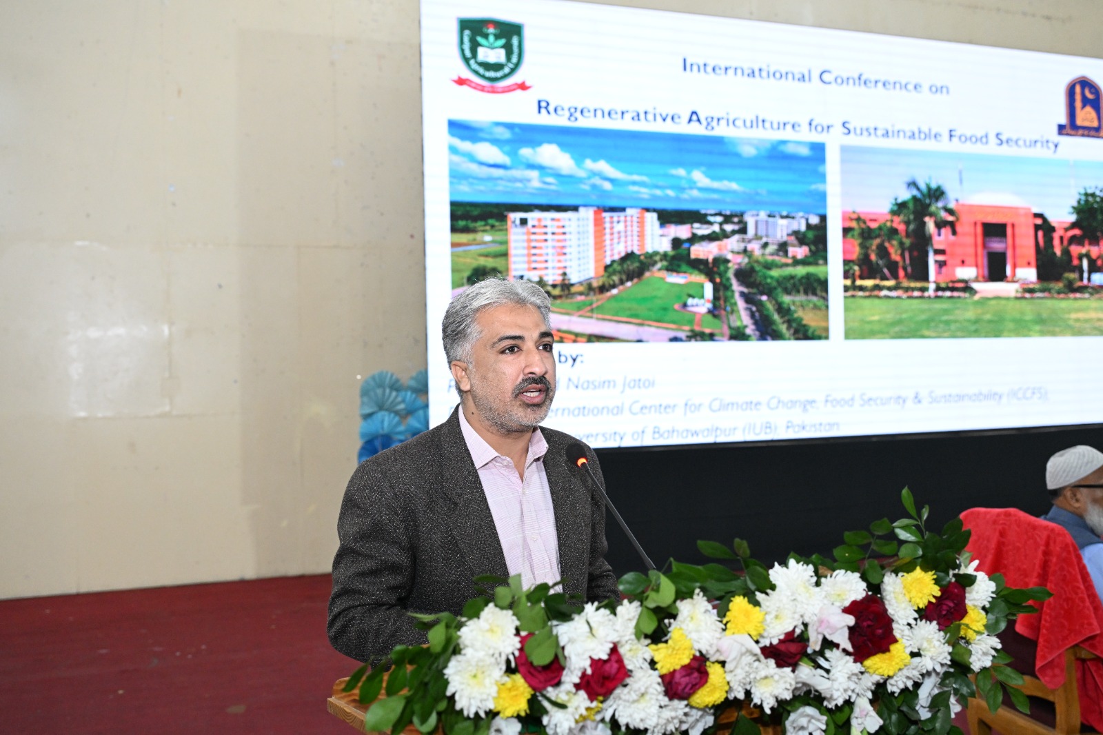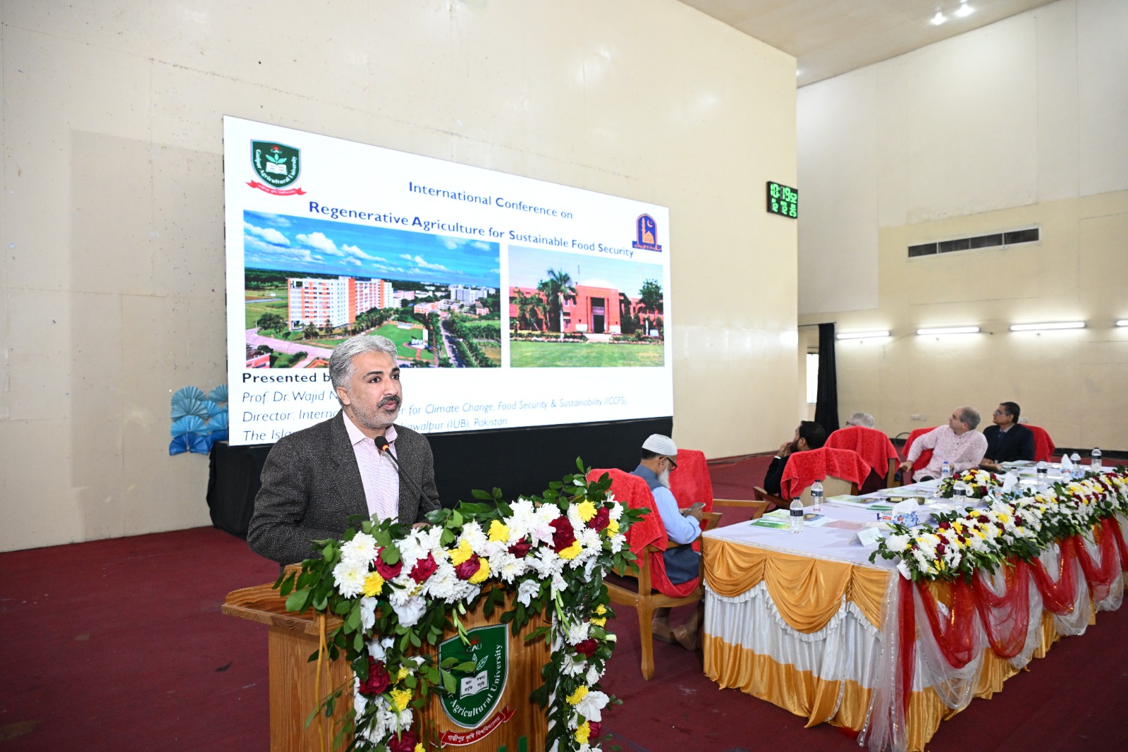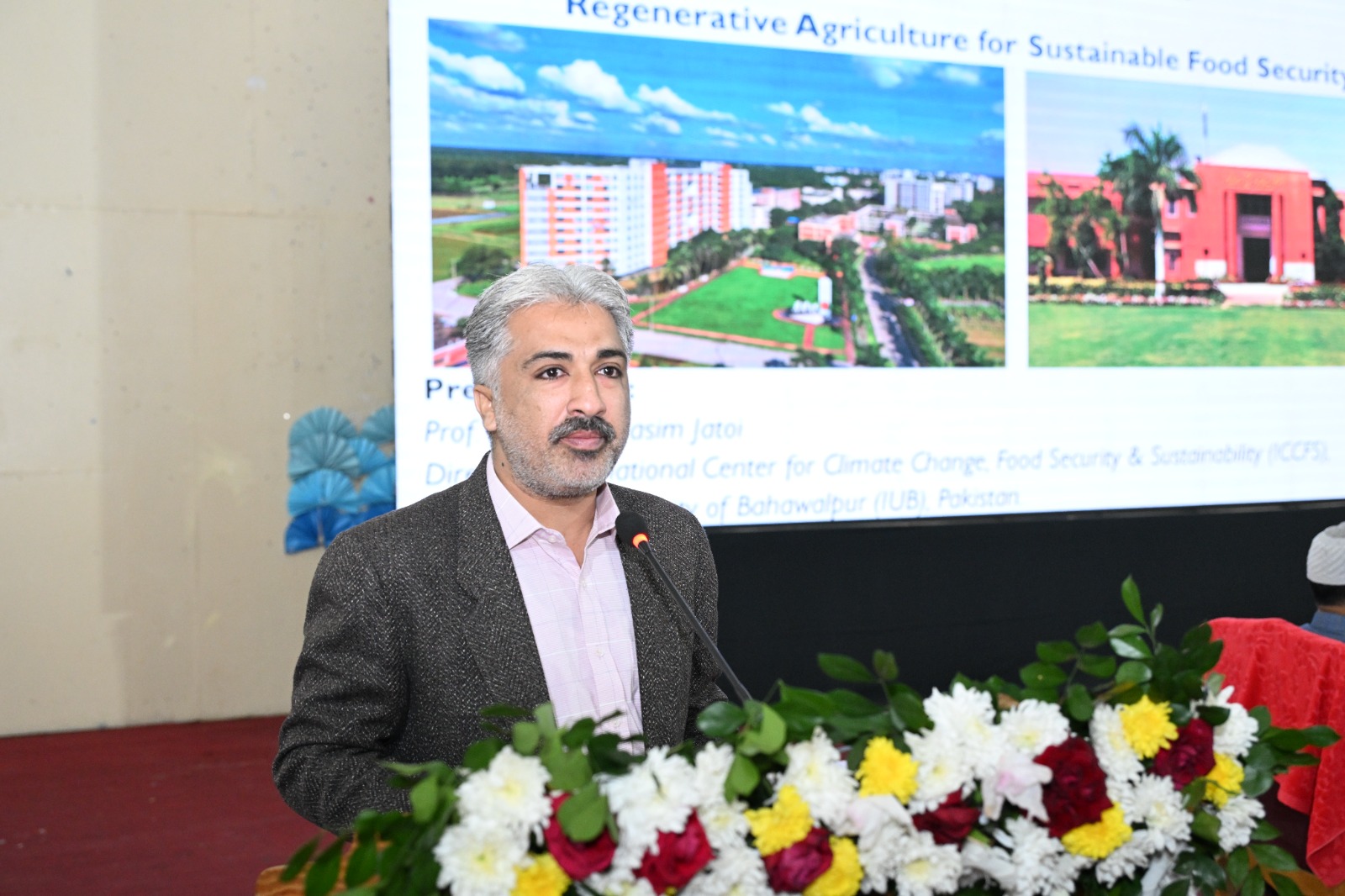 Day 01: An International Conference on “Regenerative Agriculture for Sustainable Food Security (ICRASFS)” by Gazipur Agricultural University, Bangladesh (GAUB) was takes place on 12-13 December 2025. This conference covers different areas of research relevant to UN-SDG’s directly/indirectly linked with Climate Action, Food Security, Sustainability, Conservation. Prof. Dr. Anisuzzaman Chowdhury, Special Assistant to the Chief Advisor, Government of the People’s Republic of Bangladesh; Prof Dr G.K.M Mustafizur Rahman, Vice Chancellor; Prof. Dr. Md. Safiul Islam Afrad Chair of Organizing Committee & Treasure; Prof Dr Nasimul Bari, Dean-Faculty of Agriculture “Gazipur Agriculture University, Bangladesh; Dr Stefan Mann, Agroscope, Switzerland; appreciate and acknowledge the contribution of Conference Keynote Speaker Prof. Dr Wajid Nasim Jatoi, The Islamia University of Bahawalpur (IUB), Pakistan. During Visit, Inaugural Session completed with lot of successful collaborations, presented gift of Saraiki AJARAK to Honorable Guests, capacity building of students’ that includes sessions of under/post graduate students/discussions, Gala Dinner with Urdu Gazal on special compliments from Honorable Vice Chancellor, GAU, Bangladesh.