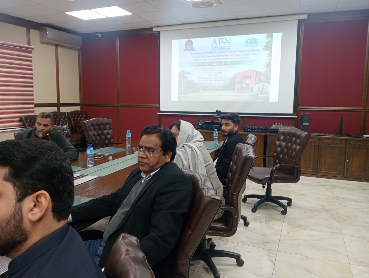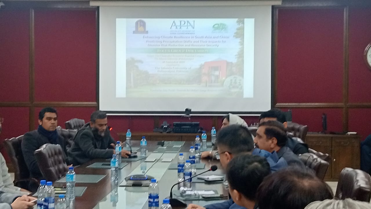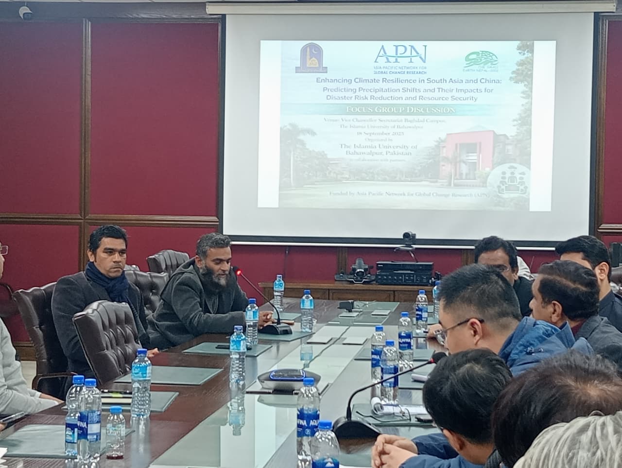 An International Research Project entitled “Enhancing Climate Resilience in South Asia and China that was approved by Asia-Pacific Network for Global Change Research (APN)'s and details can be found from the link https://www.apn-gcr.org/project/enhancing-climate-resilience-in-south-asia-predicting-precipitation-shifts-and-their-impacts-for-disaster-risk-reduction-and-resource-security/. Focus Group Discussion were held in The Islamia University of Bahawalpur (IUB), Pakistan In this meeting a group of 07 Chinese delegates also participate and detailed discussion was done for exploring new avenues for developing strong collaboration, cooperation and start initiatives between different organizations to tackle the burning issue of climate change and its impacts on society, environment and ecosystem as whole. Prof. Dr. Wajid Nasim Jatoi, Professor, Department of Agronomy, Faculty of Agriculture & Environment (FA&E) & Director, International Center for Climate Change, Food Security & Sustainability (ICCFS) highly acknowledge & appreciate APN-Japan, Lead Principal Investigator Dr. Dhiraj Pradhananga, Tribhuvan University-Nepal, Small Earth Nepal & other collaborators all around the world for such a great initiative that will definitely provide the opportunity for students/researchers/scientists/early career researchers of IUB (and surrounding) for capacity building, exposure to international trainings/workshops as well as learning to get benefit from it.