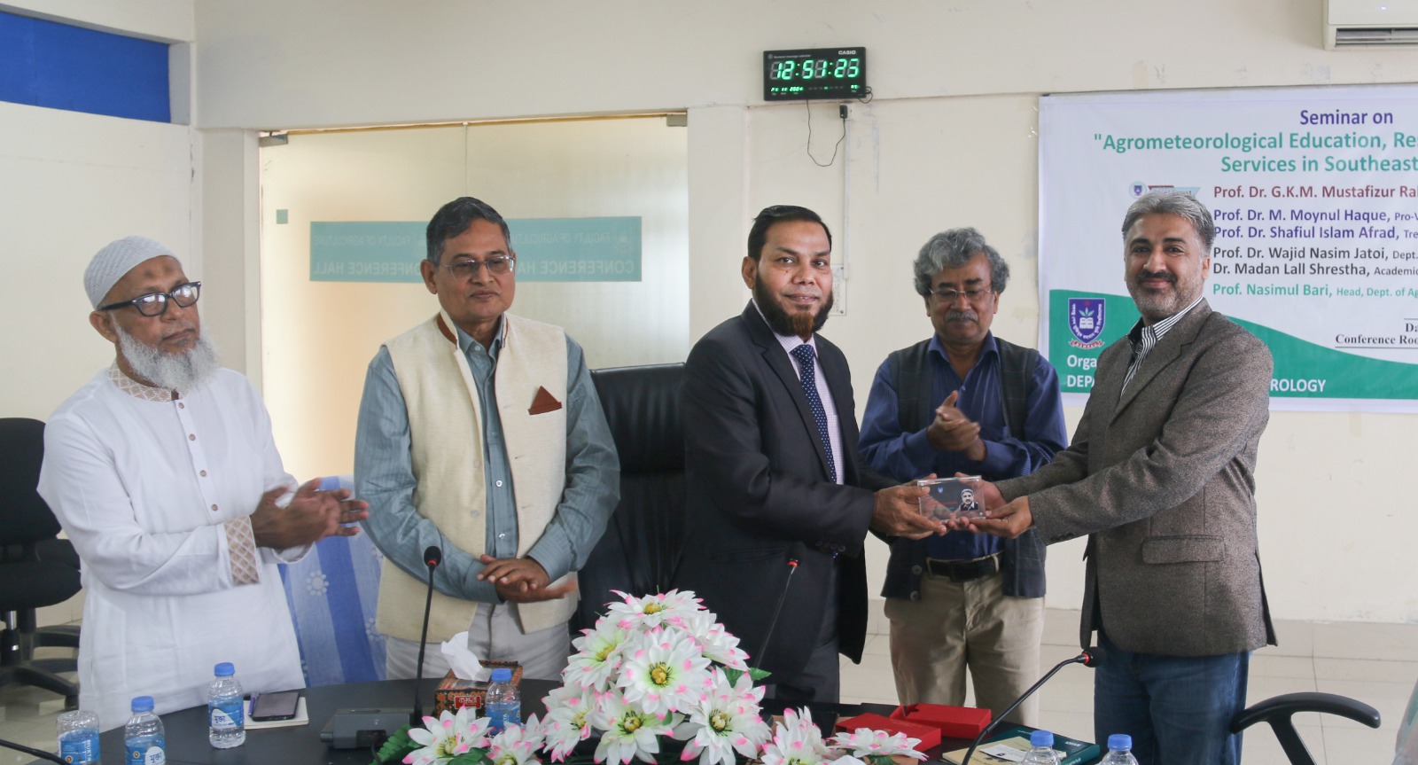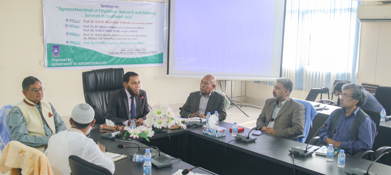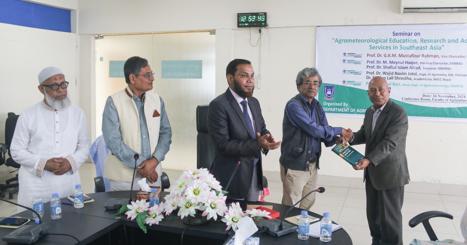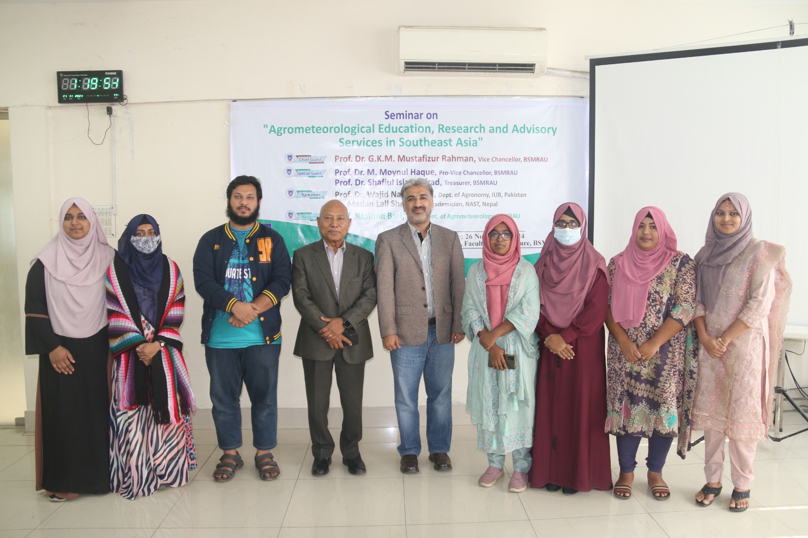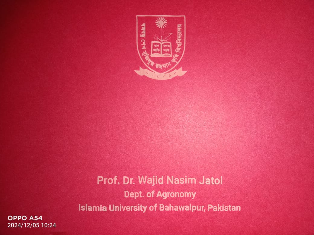 An International Seminar on “Agrometeorological Education, Research & Advisory Services in Southeast Asia” organized by the Department of Agro-Meteorology, Faculty of Agriculture, BSMR Agriculture University, Dhaka, Bangladesh on November 26, 2024. Prof. Dr. GKM Mustafizur Rahman, Vice Chancellor, Prof. Nasimul Bari, Chair, Department of Agro-Meteorology, Faculty of Agriculture, Bangabandhuu Sheikh Mujibur Rahman Agricultural University (BSMRAU), Gazipur, Dhaka, Bangladesh (along with other dignities) pleased & welcome international scientists including Prof. Dr Wajid Nasim Jatoi, Professor, Department of Agronomy, Faculty of Agriculture and Environment (FA&E) & Director, International Center for Climate Change, Food Security & Sustainability (ICCFS), The Islamia University of Bahawalpur (IUB)-Pakistan. Prof. Dr. Madan Lall Shrestha, Academician, Nepal Academy of Science and Technology, Nepal & have great interaction/discussion with Prof. Dr Mirza Hasanuzzaman, Professor of Agronomy at Sher-e-Bangla Agricultural University, Dhaka, Bangladesh to start new collaborative avenues on student/faculty exchange, some joint-ventures in the form of projects, conferences, seminars, workshops with The Islamia University of Bahawalpur (IUB), Pakistan. These types of initiatives at international level will definitely contributes the recognition of IUB - Pakistan & BSMRAU Bangladesh as well as exposure to lot of research and education opportunities for students, researchers, scientists and faculty of different Institutes/Universities in broader spectrum, InshaAllah.