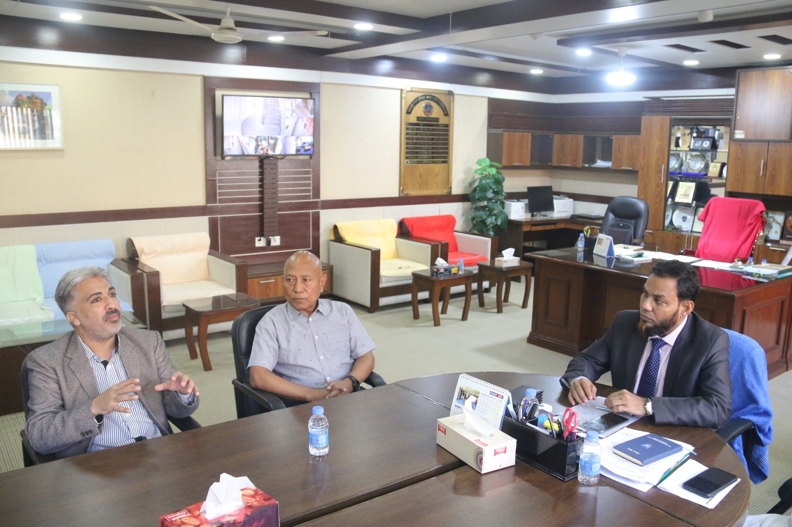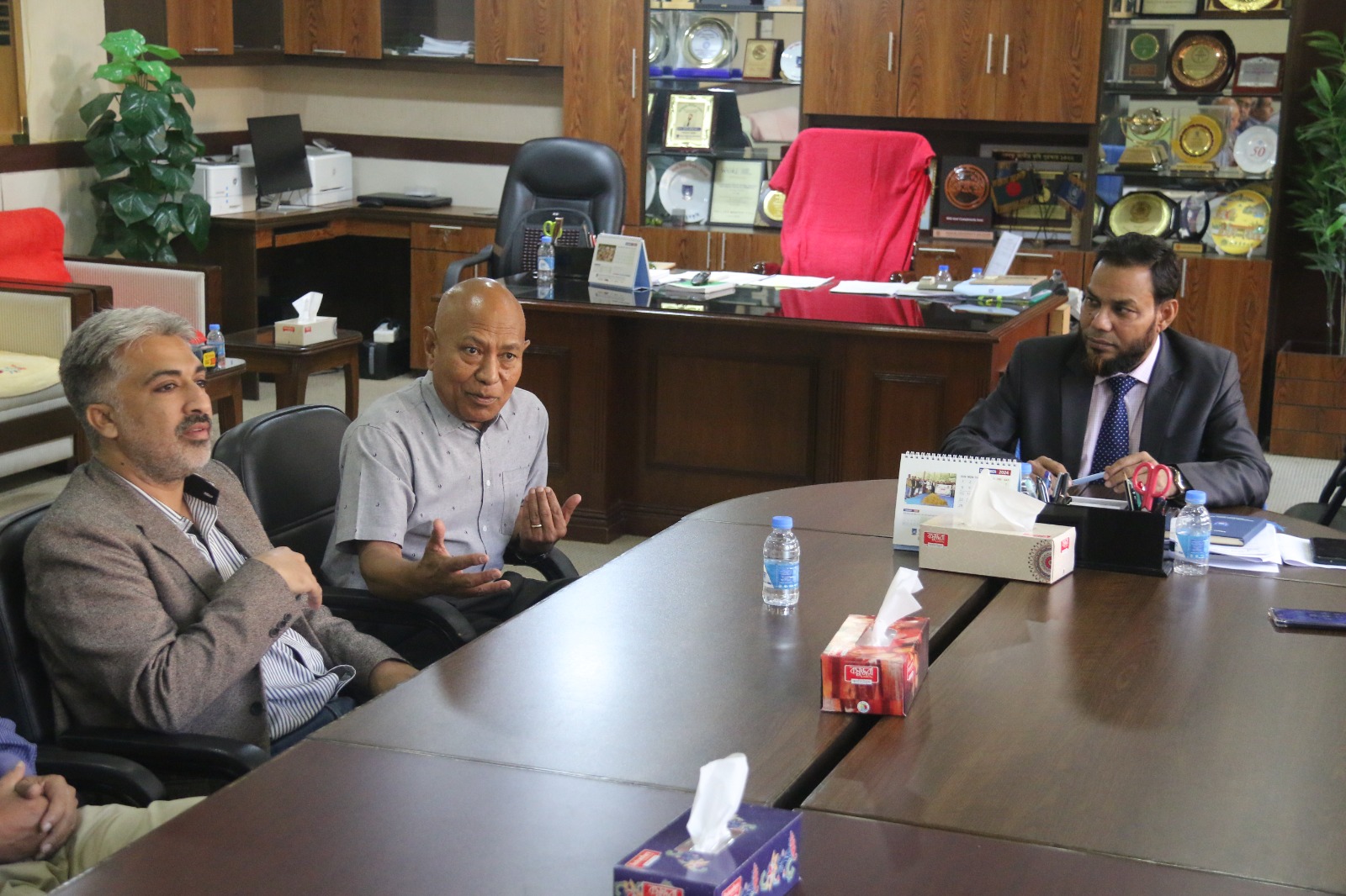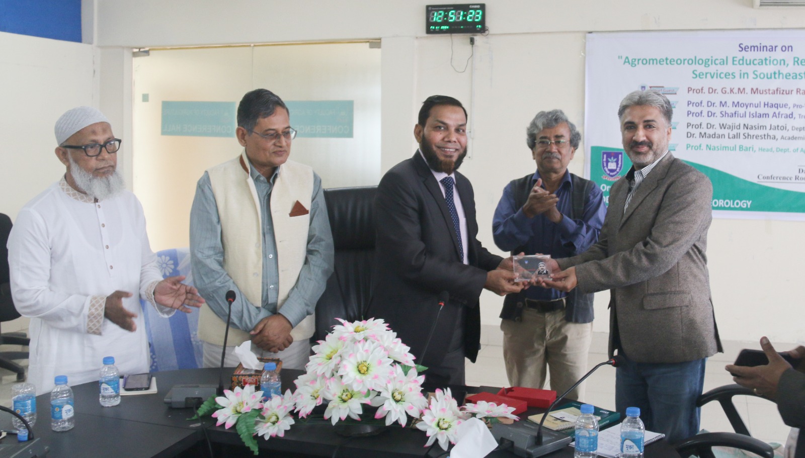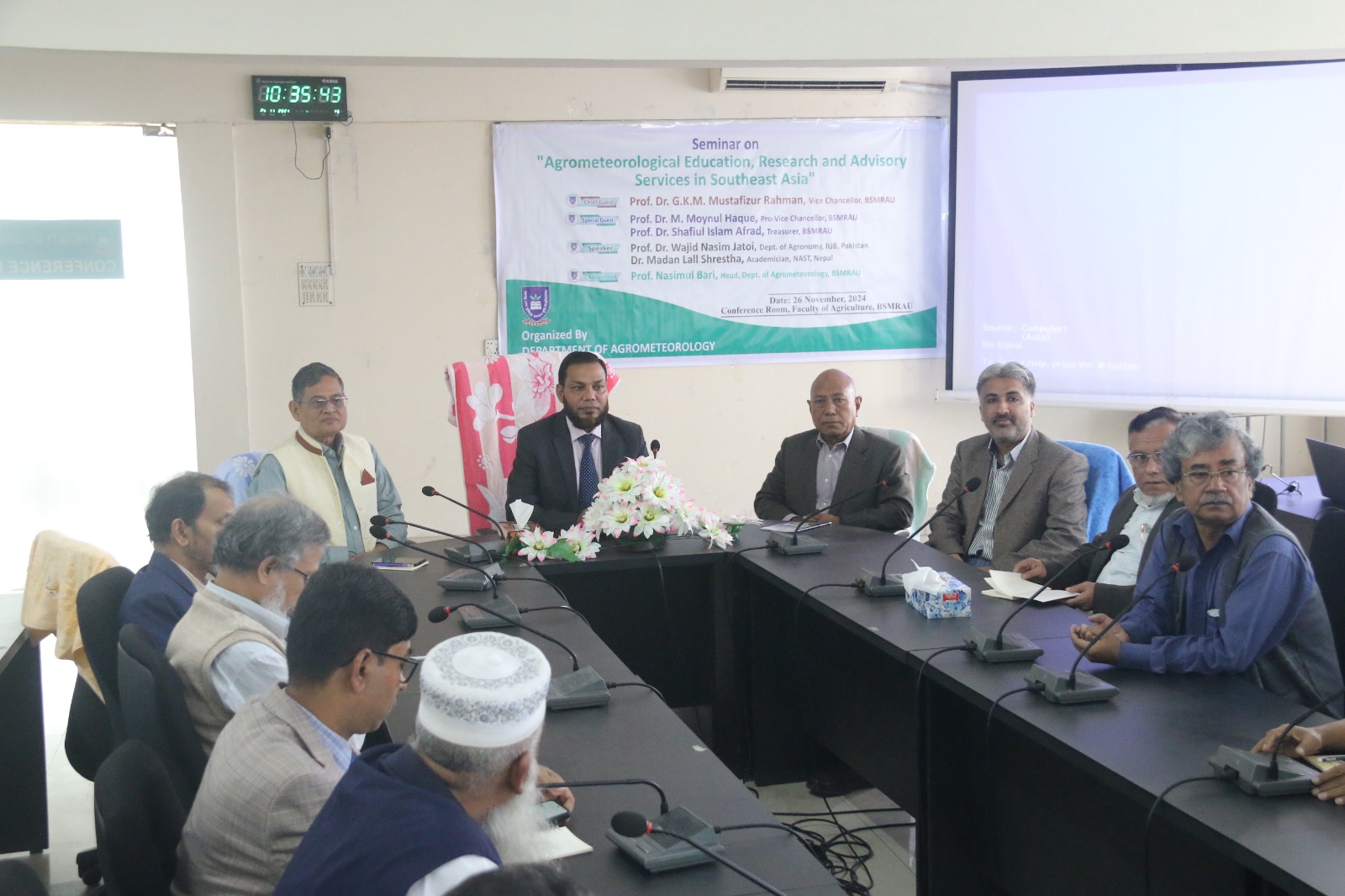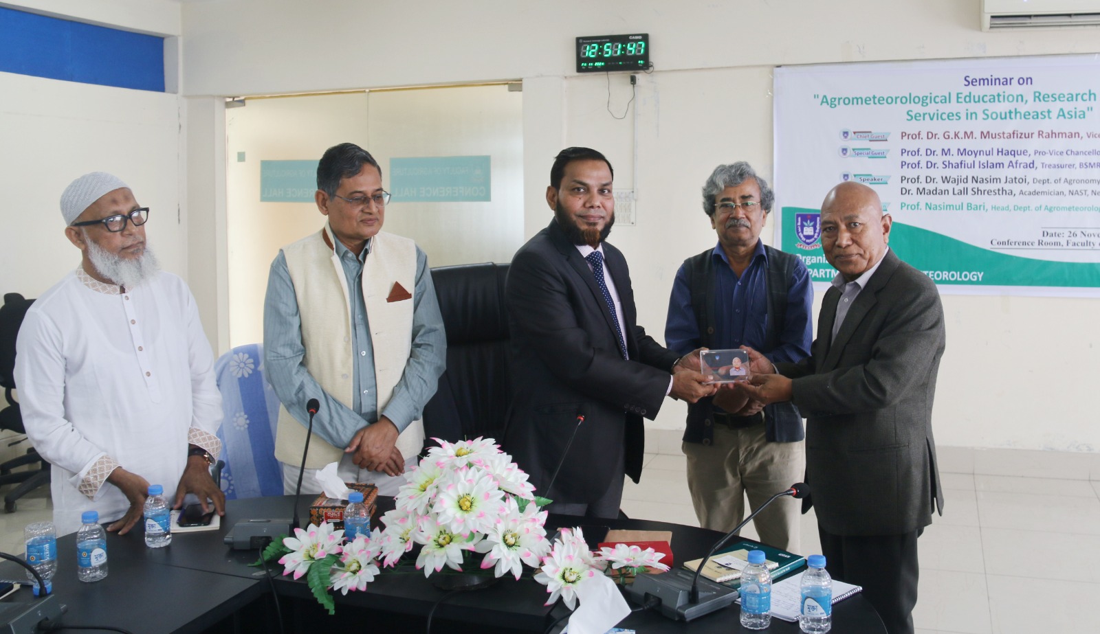 An International Seminar on “Agrometeorological Education, Research & Advisory Services in Southeast Asia” organized by the Department of Agro-Meteorology, Faculty of Agriculture, BSMR Agriculture University, Dhaka, Bangladesh on November 26, 2024. Prof. Dr. GKM Mustafizur Rahman, Vice Chancellor, Prof. Nasimul Bari, Chair, Department of Agro-Meteorology, Faculty of Agriculture, Bangabandhuu Sheikh Mujibur Rahman Agricultural University (BSMRAU), Gazipur, Dhaka, Bangladesh (along with other dignities) pleased & welcome international scientists including Prof. Dr Wajid Nasim Jatoi, Professor, Department of Agronomy, Faculty of Agriculture and Environment (FA&E) & Director, International Center for Climate Change, Food Security & Sustainability (ICCFS), The Islamia University of Bahawalpur (IUB)-Pakistan. Prof. Dr. Madan Lall Shrestha, Academician, Nepal Academy of Science and Technology, Nepal & have great interaction/discussion with Prof. Dr Mirza Hasanuzzaman, Professor of Agronomy at Sher-e-Bangla Agricultural University, Dhaka, Bangladesh to start new collaborative avenues on student/faculty exchange, some joint-ventures in the form of projects, conferences, seminars, workshops with The Islamia University of Bahawalpur (IUB), Pakistan. These types of initiatives at international level will definitely contributes the recognition of IUB - Pakistan & BSMRAU Bangladesh as well as exposure to lot of research and education opportunities for students, researchers, scientists and faculty of different Institutes/Universities in broader spectrum, InshaAllah.