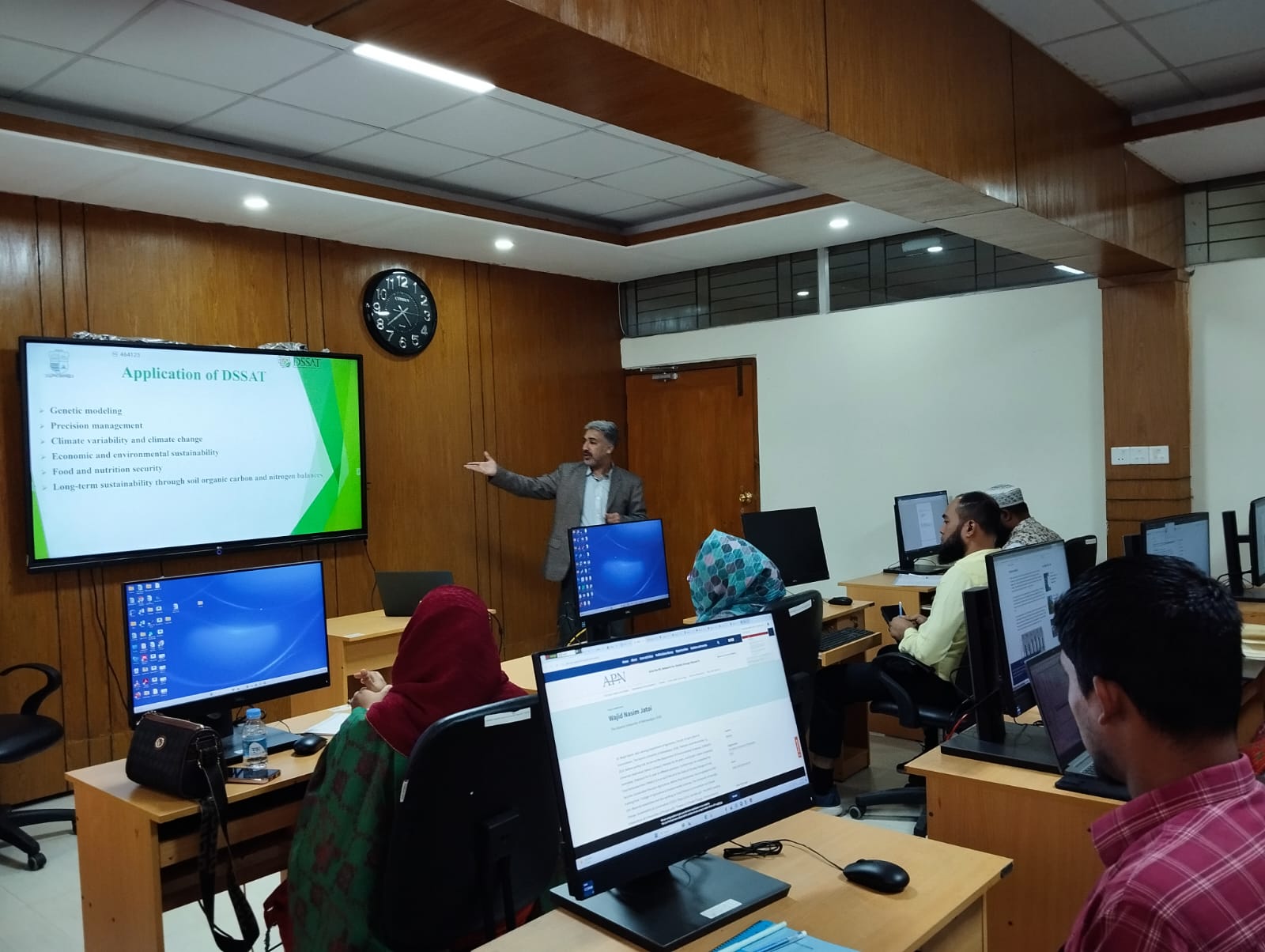 An International Workshop on Climate & Crop Modeling, leaded by the Department of Agro-Meteorology, Faculty of Agriculture, BSMR Agriculture University, Dhaka, Bangladesh (November 22-26, 2024). BSMR Agriculture University, Dhaka, Bangladesh is the leading University in Bangladesh according to QS ranking in 2024 with international recognition etc. After the training, there were meetings with faculty members and Vice Chancellor of BSMR Agriculture University, Dhaka, Bangladesh and Prof. Dr Mirza Hasanuzzaman, Professor of Agronomy at Sher-e-Bangla Agricultural University, Dhaka, Bangladesh to start new collaborative avenues on student/faculty exchange, some joint-ventures in the form of projects, conferences, seminars, workshops with The Islamia University of Bahawalpur (IUB), Pakistan. Prof. Dr Wajid Nasim Jatoi, Professor, Department of Agronomy, Faculty of Agriculture and Environment (FA&E) & Director, International Center for Climate Change, Food Security & Sustainability (ICCFS), The Islamia University of Bahawalpur (IUB), was invited as International Subject Expert from IUB-Pakistan. These types of initiatives at international level will definitely contributes the recognition of IUB at International level as well as exposure to lot of research and education opportunities for students and faculty of IUB-Pakistan.